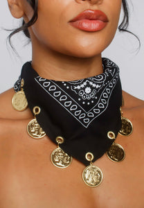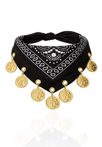 Black Cloth Bandana with Vintage Coin Charms